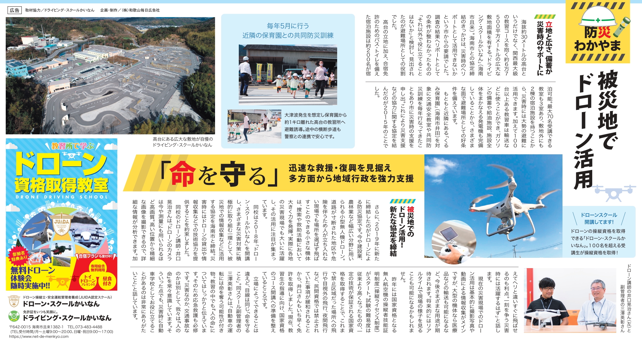 当校の三澤副管理者と井口指導員が、海南市と締結している防災協定について毎日広告社より取材を受けました☺︎